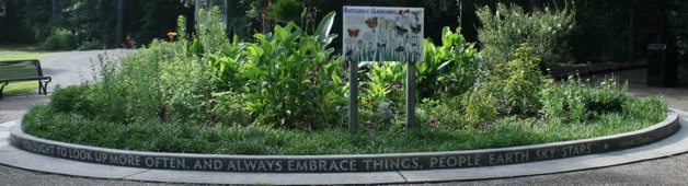 *The word “SIGNS” at the top of this page is presented in the DaVinci typestyle. The font diagrams how letters are constructed using geometric shapes. Below; an inscribed poem in concrete: Butterfly Garden at Audubon Zoo.