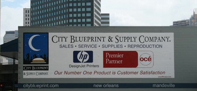 The owner of the company, Paul Boudousquie’, approaches every sign he creates as a work of art. With a background in advertising, graphic arts and a degree in Fine Art from the University of New Orleans, he is driven toward beauty and excellence, realizing that his work will become a part of the cityscape. Shown above; City Blueprint of New Orleans and Mandeville is not only a longtime client, but a major supplier. This 12‘ x 50‘ wall painting is located at the corner of Poydras and Claiborne near the Super Dome.